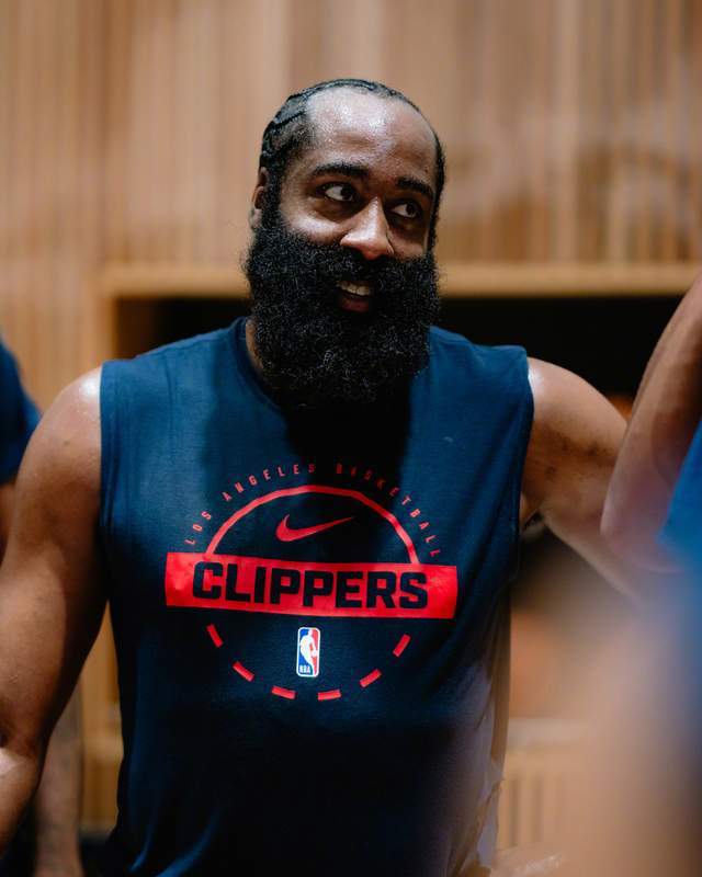 快船积极备战!小卡防守专注,哈登心情大好,三大中锋首合体