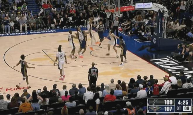 下半场,胖虎带着鹈鹕继续紧咬比分,常规时间最后关头还2罚1中扳平比分,将比赛拖入加时。