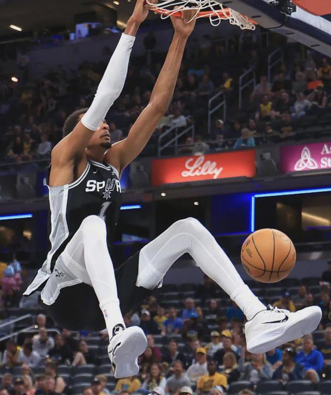 季前赛里面对步行者,文班亚马在篮下直接一个“铁山靠”撞开对手完成奥尼尔式的扣篮,技惊四座。